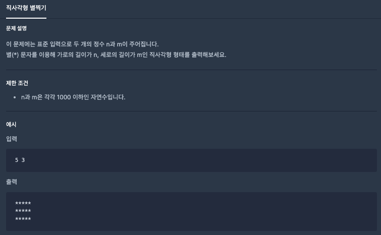 사용자가 5 / 3을 입력하면 가로5 , 세로3=의 *로 이루어진 사각형이 출력되어야하고