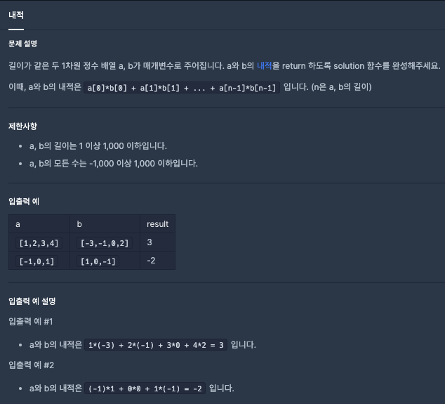 (a[index] * b[index]).sum : 배열을 n회 반복하며 곱한 값을 sum()함수가 더해준다.