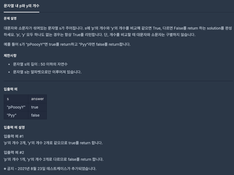 문제에서는 대소문자를 구별하지않고 같은지만 비교하기 때문에 모두 대문자로 바꿔주었다.