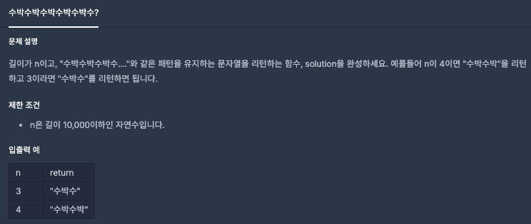 for (int i = 1 ; i <= n ; i++){if(i % 2 != 0){answer += "수";}else{answer += "박";}}